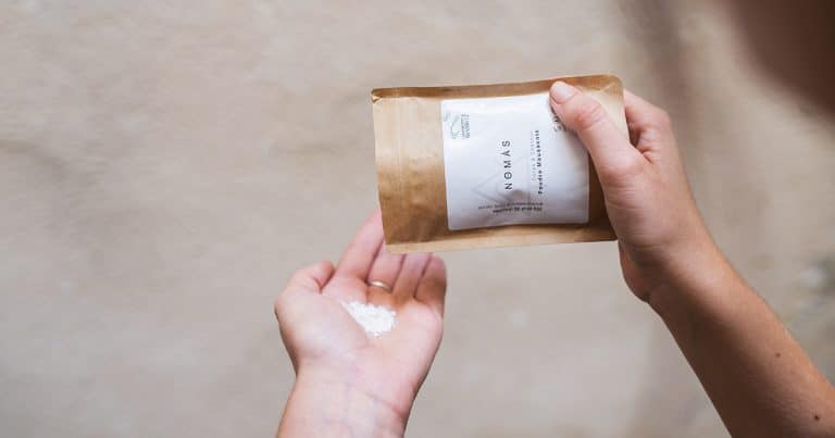 NOMAS ® est une poudre biodégradable comprenant 5 ingrédients d’origine naturelle, aux propriétés hydratantes et apaisantes. Il permet d’emballer 35 gr de poudre (l’équivalent de 20 utilisations) dans un petit sachet en papier kraft. Il se glisse donc facilement dans tout bagage et permet de consommer de manière respectueuse en accord avec son environnement. Pratique pour les voyageurs, NOMAS® peut également être utilisé, chez soi, au quotidien. La poudre est concentrée afin de pouvoir utiliser de petites quantités. Cette dernière est très bien tolérée, elle convient à toute la famille.