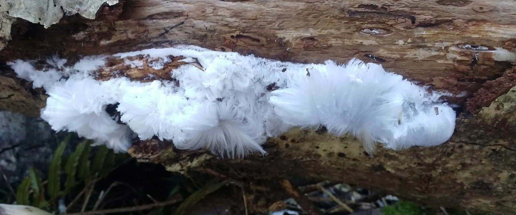 Il faut des conditions climatiques particulières pour que le givre se forme, comme sur cette photo, sous forme de filaments. L’humidité des végétaux pourraient influer sur la forme de cette délicate création de glace.