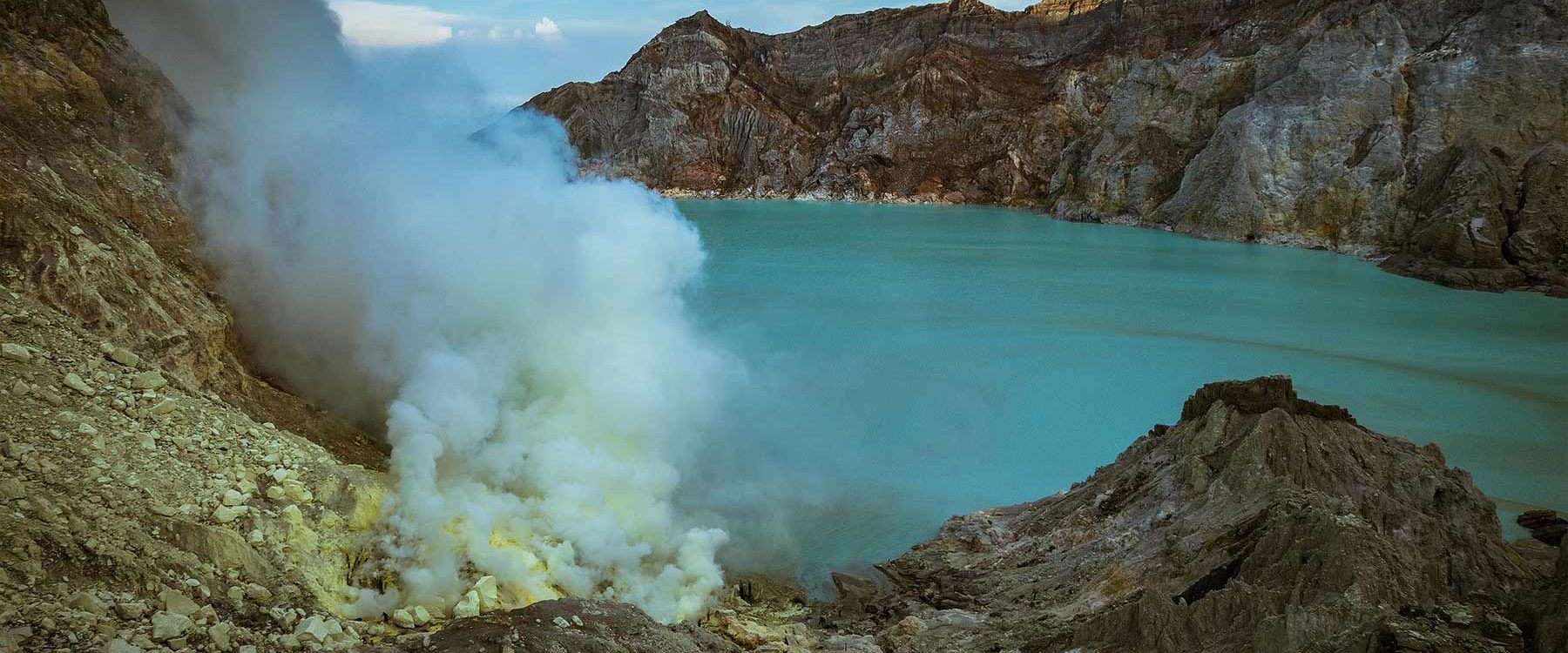 Le Kawah Ijen est un cratère situé sur l’île de Java. Ses eaux turquoises ne doivent pas vous tromper : il s’agirait du lac le plus acide sur Terre avec un Ph de 0,2 !