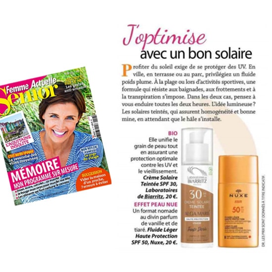 Femme Actuelle fait aussi l’éloge de nos solaires teintés “qui assurent homogénéité et bonne mine en attendant que le hâle s’installe”.